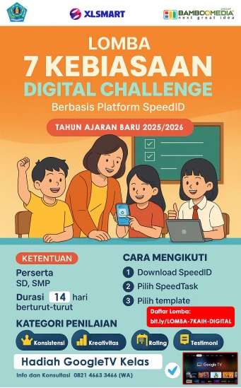 Beberapa kelas terbaik dalam partisipasi dan penerapan 7 kebiasaan digital akan memperoleh hadiah menarik, antara lain: 🎁 Google TV untuk kelas berprestasi 🎁 Kartu Perdana + Paket Data Smartfren untuk siswa dengan aktivitas terbaik